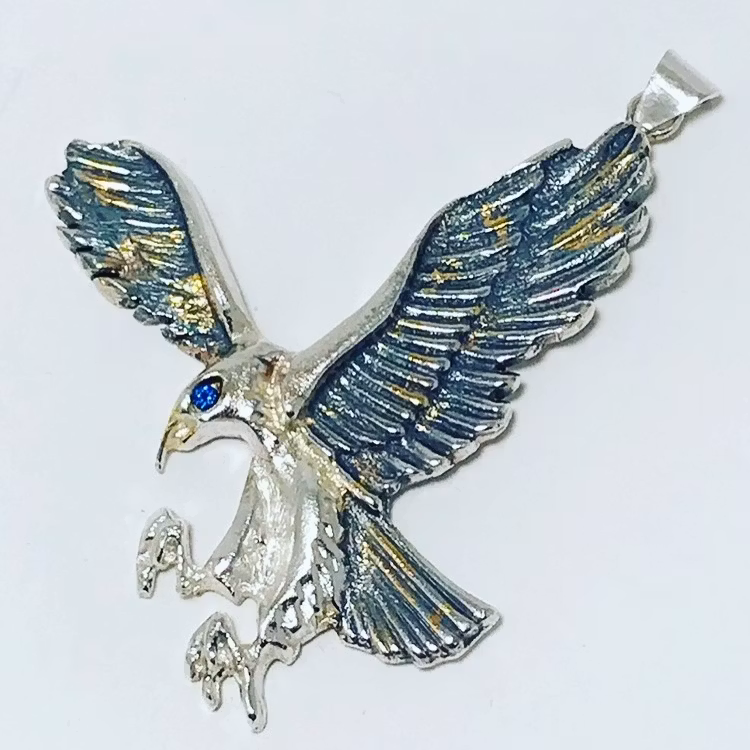 Hänge i 925 Silver 999 kr Hänge ( eagle) i 925 Silver med oxidering, 23,5 karat guldplätering och en blå zirkon sten I lager. Lägg i korgen Dela Artikelnummer: 92551-0 Information Hänge ( eagle) i 925 Silver med oxidering, 23,5 karat guldplätering och en blå zirkon sten